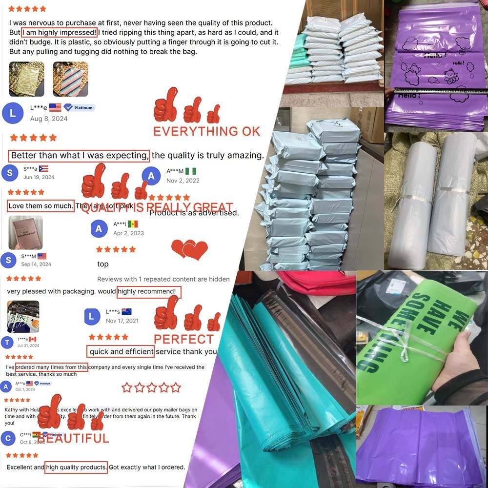 Yüksək keyfiyyətli təkrar emal edilə bilən PE materialından hazırlanmış poli poçt çantalarımız suya davamlıdır, yırtılmağa davamlıdır və çatdırılma zamanı geyim, aksessuarlar və onlayn mağaza əşyalarınız üçün üstün qoruma təmin edir.
